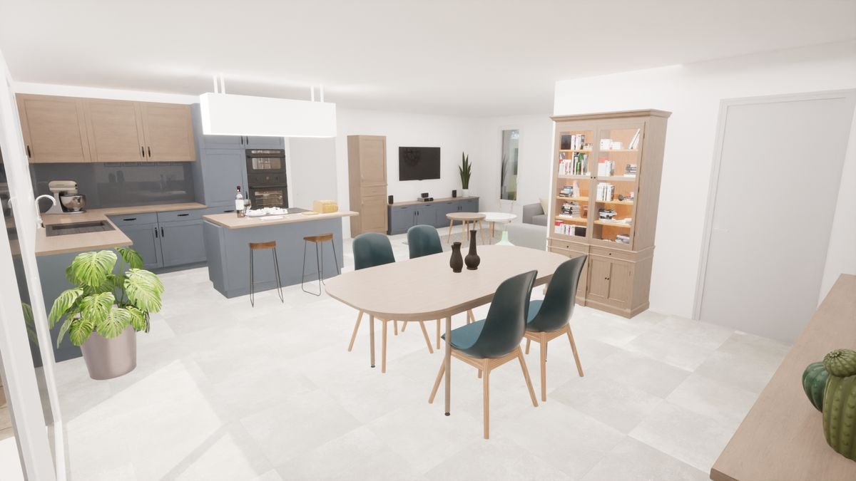 – D’une belle pièce à vivre avec cuisine ouverte. Les grandes ouvertures promettent une belle luminosité dans la pièce.